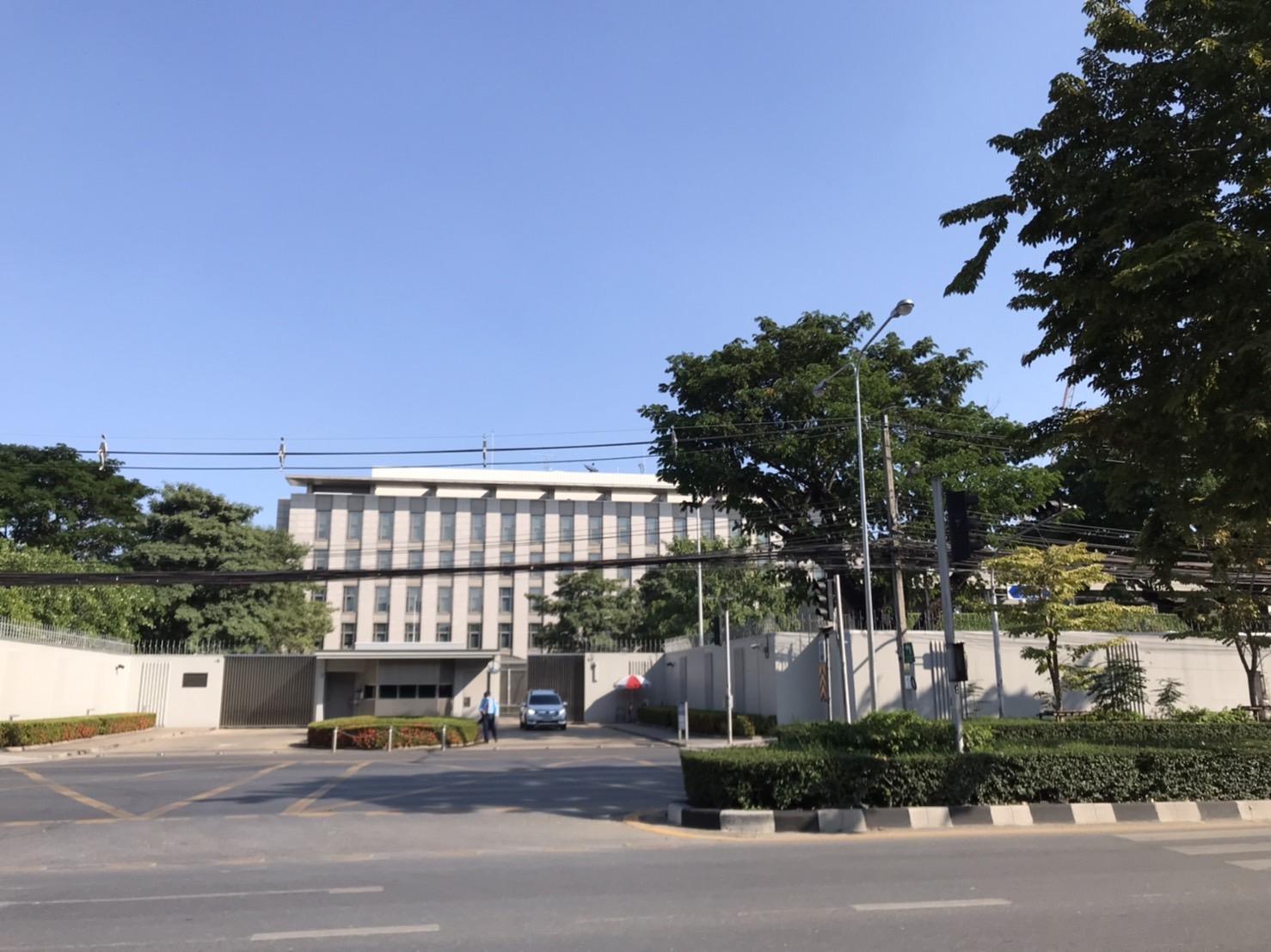日本大使館はルンピニ公園の東側、ウィタユ通りにあります。